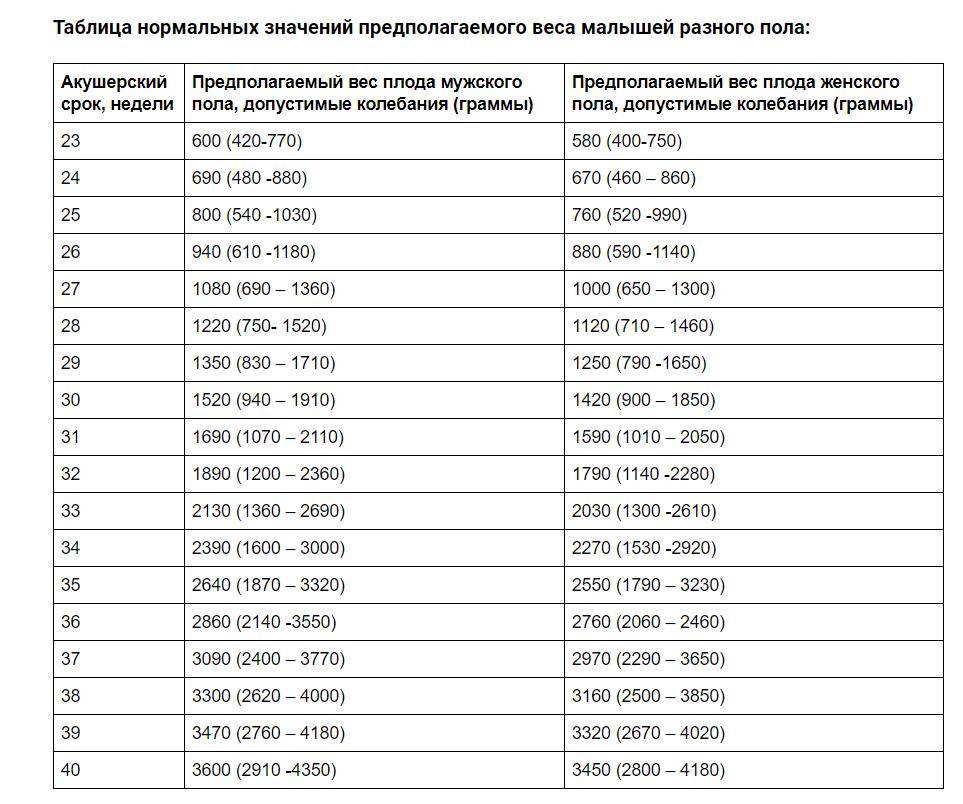3. Вес плода примерно равен 1/20 от массы тела женщины.