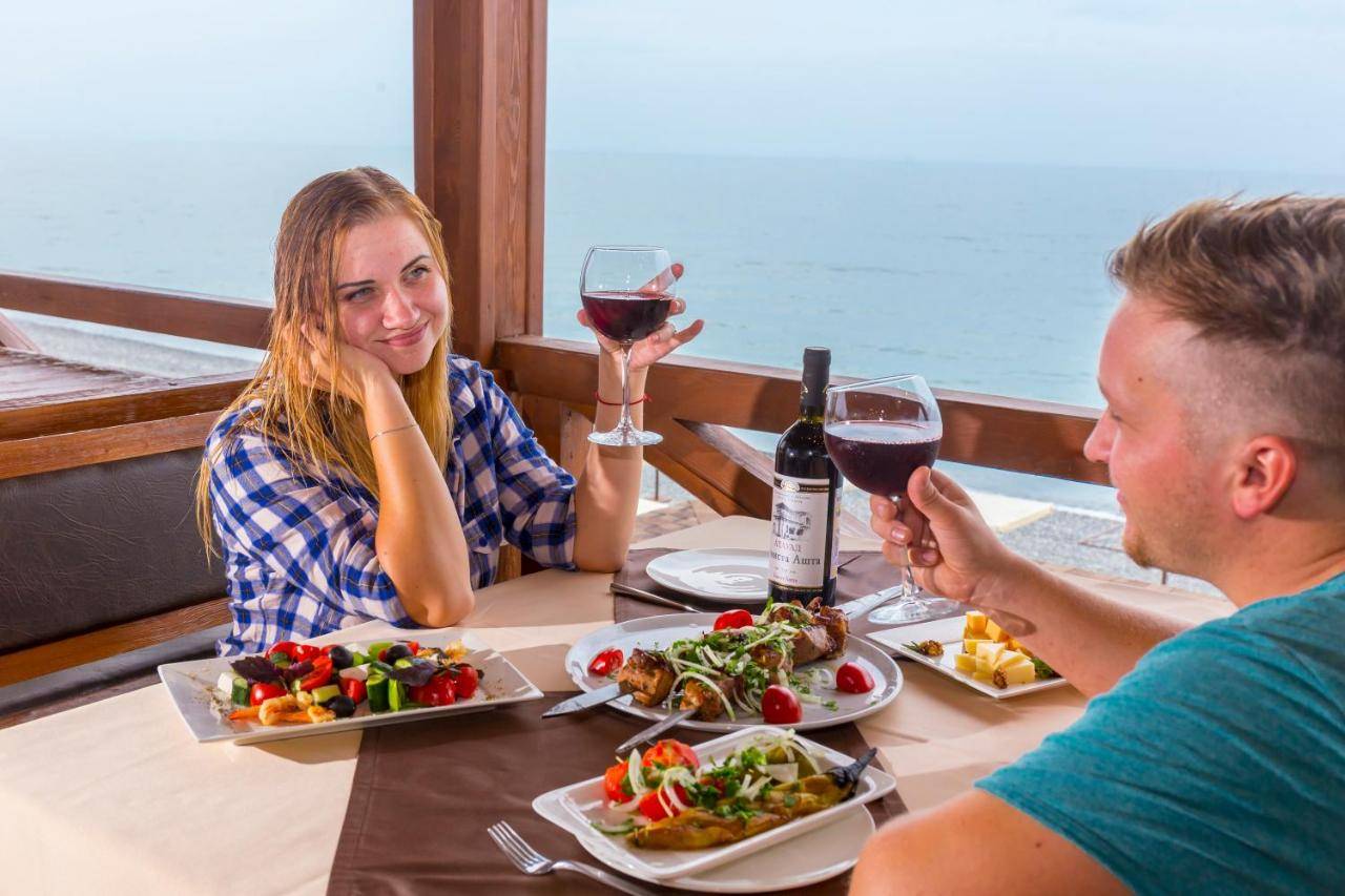 На фото: Napra – отель с трехразовым питанием – приятный отдых на море в Абхазии