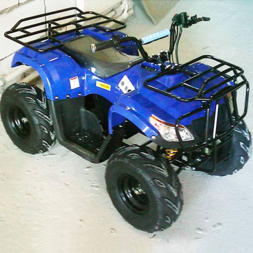 Аккумуляторный детский квадроцикл, отличающийся маневренностью и компактностью, имеет в комплектации: ножной гидравлический тормоз, цепной привод, пневматические колеса диаметром 13 дюймов, двойную переднюю подвеску, заднюю амортизационную стойку, дисплей, на котором можно отслеживать пробег, скорость и уровень заряда батареи, передние фары, гудок, два багажника, сигнализацию. Двигатель агрегата имеет мощность 800 Вт, свинцово-кислотная аккумуляторная батарея емкостью 12 Ач полностью заряжается за 8 часов.
