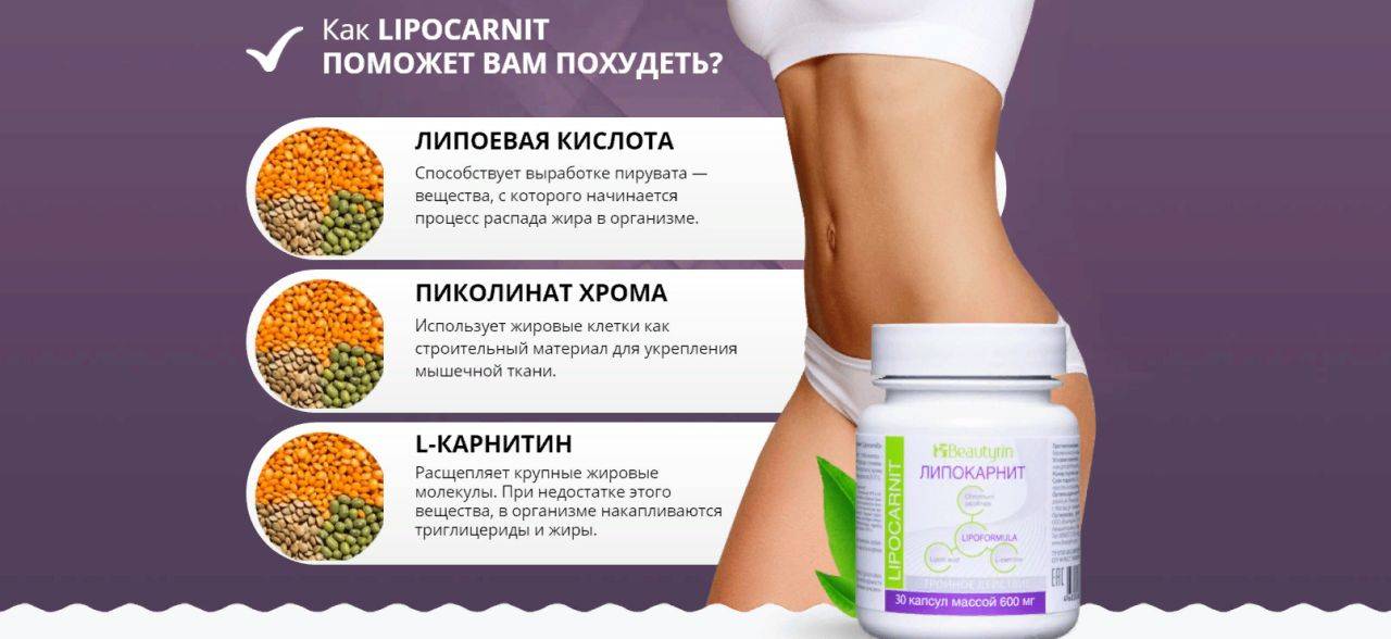 Натуральные компоненты препарата Липокарнит, попадая в организм, сразу начинают действовать. Они участвуют в обменных процессах, пищеварении.