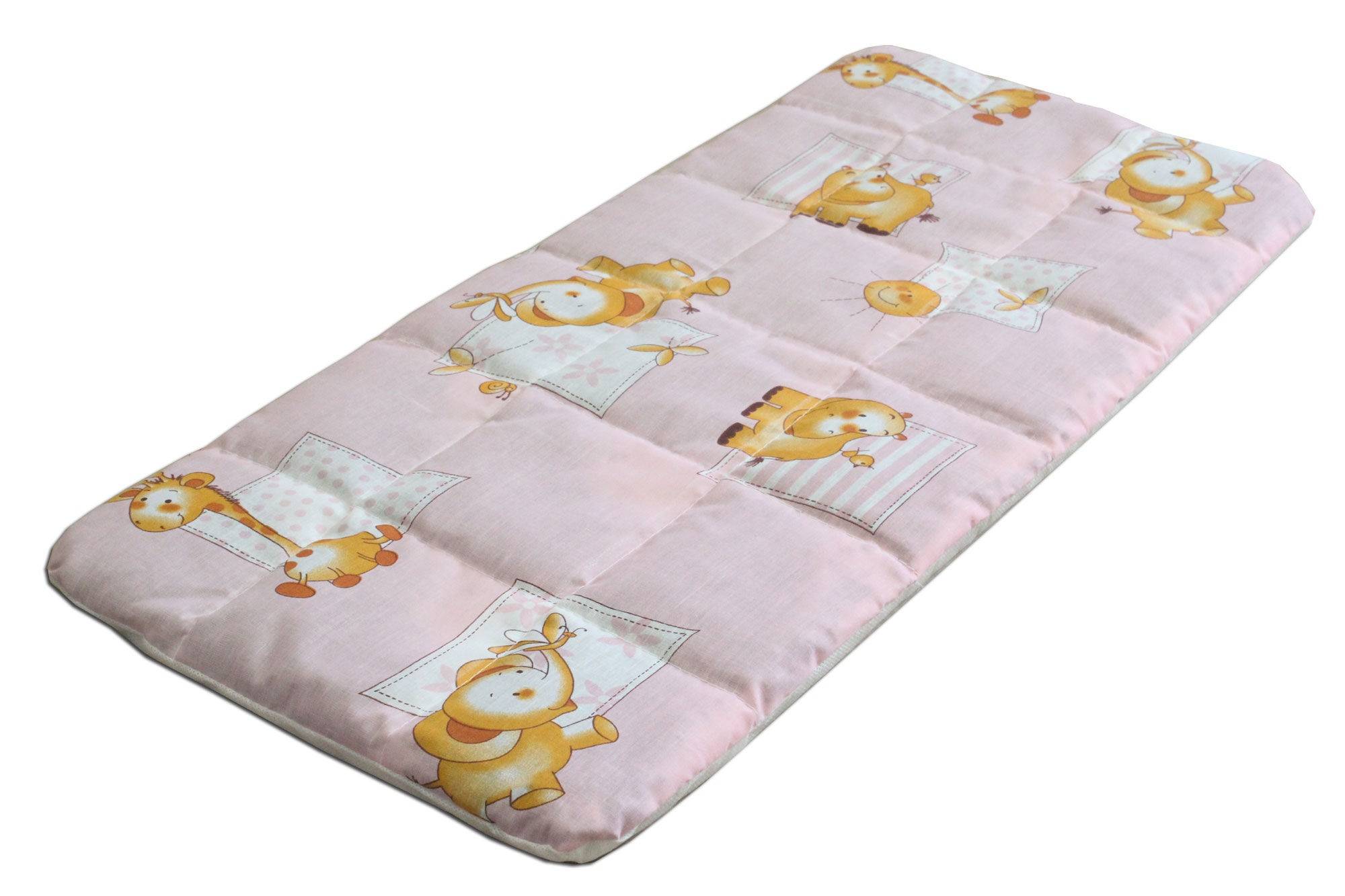 Основной критерий выбора материала – это его экологичность и безопасность для ребенка. Он должен быть выполнен из натуральной нити, не иметь химического запаха и неприятной кольчатой структуры. Прогулочные матрасы часто покрывают клеенчатой тканью, чтобы их легко было мыть в дороге.