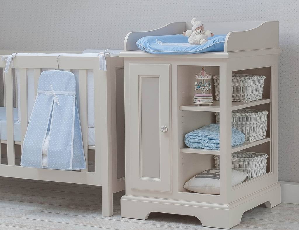Пеленальный комод, он имеет более внушительные размеры. Весомый аргумент в его пользу – возможность использования в других целях, когда малыш вырастет. Комод-пеленатор внешне напоминает обычную тумбу с выдвижными полками, при этом, он оснащен защитными деревянными бортами, которые можно снять при необходимости. В дальнейшем ним можно пользоваться как вместительным шкафчиком.