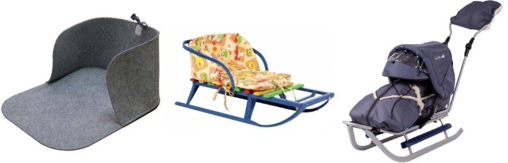 Санки с алюминиевой рамой, полозьями из листовой стали и разноцветными дощечками — классический вариант, известный со времён СССР. В продаже также имеются деревянные, плетеные и пластиковые модели — отечественных и зарубежных брендов, бюджетные и высокотехнологичные. Все эти варианты нуждаются в дополнительном утеплении матрасом.