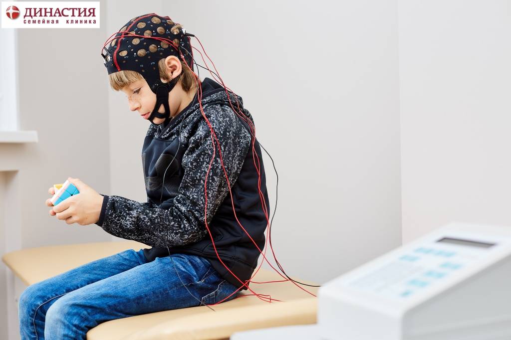 Для проведения ЭЭГ головного мозга у детей используют комнату, по возможности не пропускающую свет и звук. На голову пациента перед исследованием надевают специальную шапочку с датчиками, которые передают сигналы на прибор (электроэнцелограф).