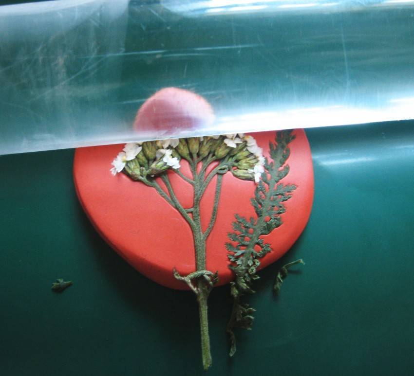 - После высыхания, при помощи иголки, снимаем с силикона листочек.