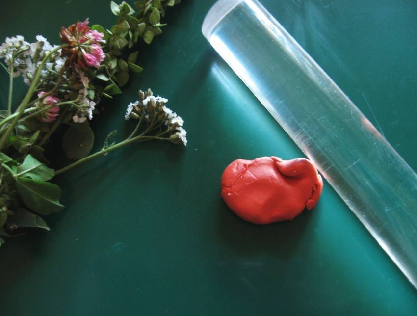 Работать полимерной глиной – одно удовольствие. Она обладает идеальной консистенцией, чтобы вобрать в себя все малейшие прожилки и рельеф листа. Если имеющаяся у вас масса недостаточно пластичная, ее следует хорошенько размять в ладонях с небольшим количеством жирного крема или вазелина. Тогда она обретет нужную вязкость.