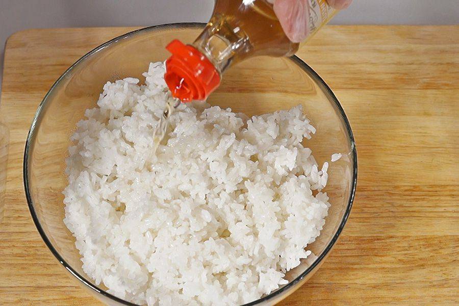 - Рассчитать количество риса: 3 ст. ложки на один ролл. Поставить отвариваться на плите или в пароварке. При готовности риса добавить рисовый уксус и все перемешать.