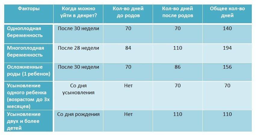 В общей сложности, при многоплодной беременности общая величина декретного отпуска составит 195 дней.