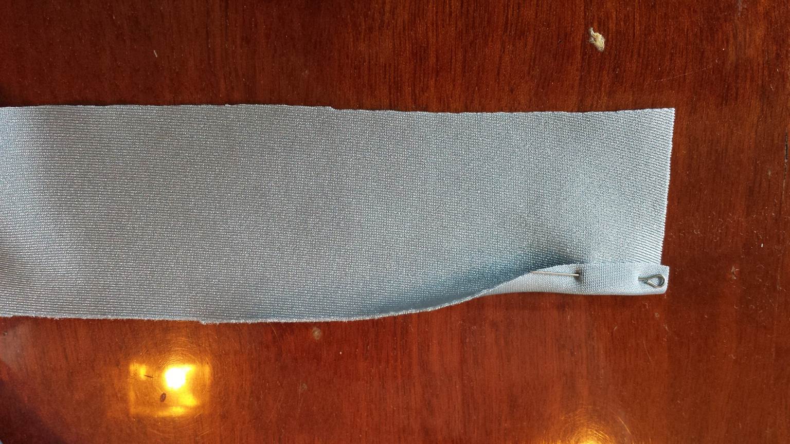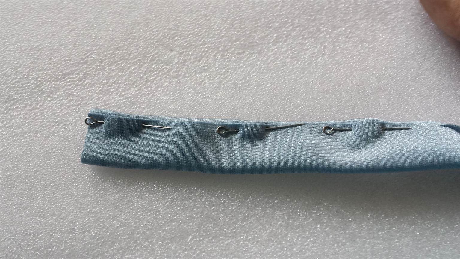 Теперь делаем наши карманы для дуг, для этого из основной ткани вырезаем две полосы шириной 4,5 см и длиной в 1 м.