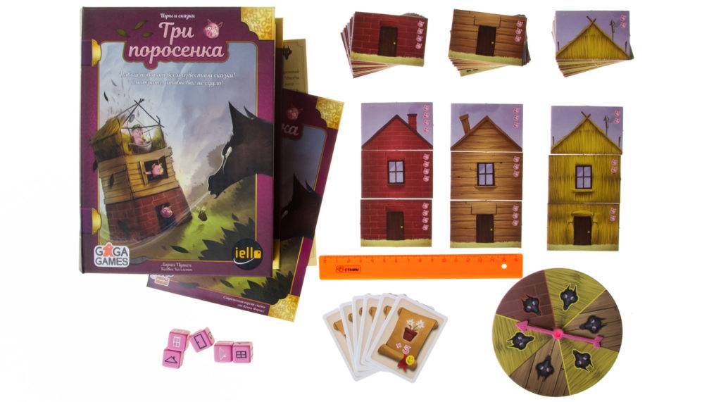 Волк на грани кубика помогает сдувать домики других игроков. Для этого достаточно подуть на стрелку и, она, прокрутившись несколько раз, укажет на нужный дом. Побеждает в игре тот, кто преуспеет в строительстве больше других.