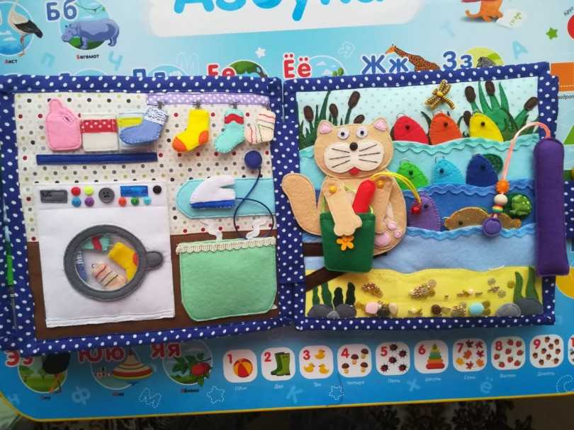 Все детали снабжают кусочками липучки, чтобы удерживались на плотной основе, оклеенной ворсистой тканью или снабженной такими же липучками. Выкладывают картинку, рядом – соответствующее слово, под ним – следующее и далее все остальные. Ребенок смотрит на картинки и «читает» слоги. После чего вторые слоги убирают и перемешивают, а малыш старается вернуть их на правильные места.