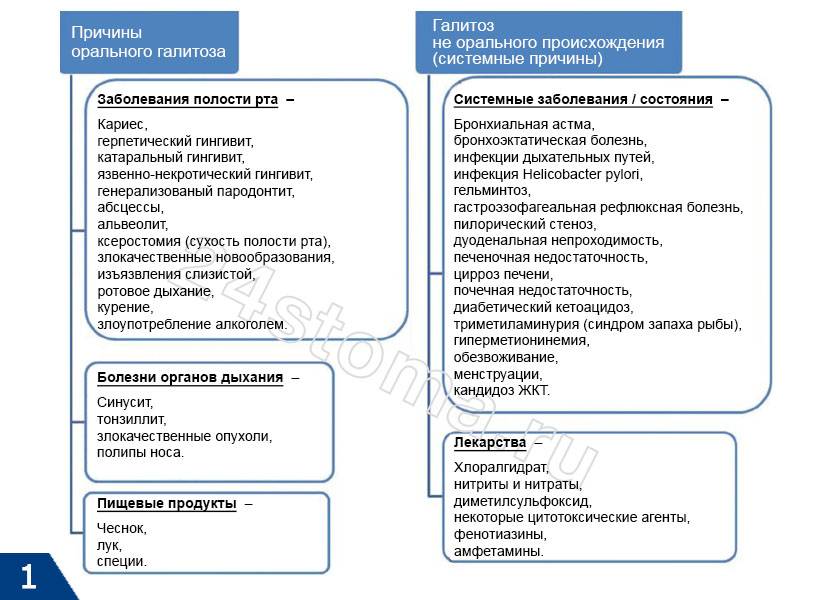 Почему пахнет изо рта: причины (схема 1-3)