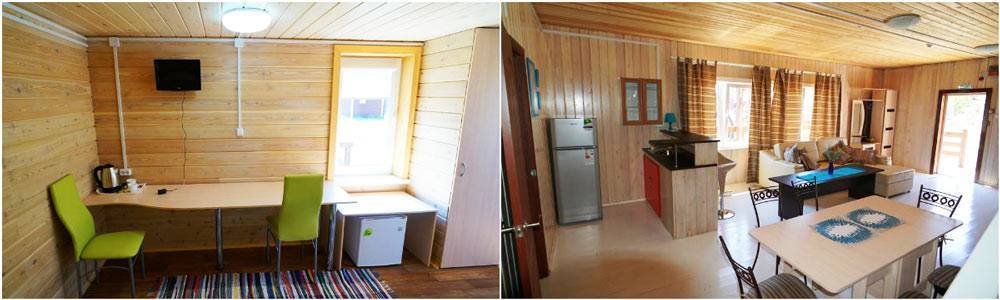 Можно арендовать и целиком коттедж, стоимость аренды будет от 17000 рублей. Вариант будет выгодным при поездке в компании друзей.