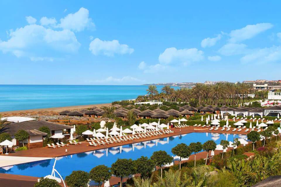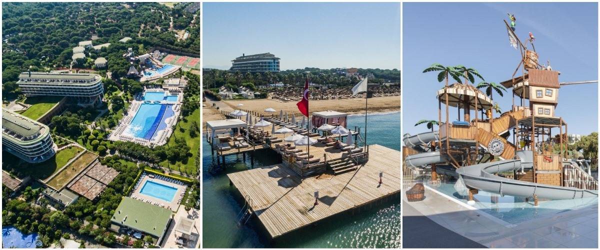 5-звездочный отель, расположенный на берегу моря в 4 км от Белека. Расстояние до моря — 100 м. Для детей имеется специальное меню, программ питания вообще много для любых потребностей. Есть европейская, средиземноморская, китайская кухня. Отдельная кухня для детей, приготовление спецпитания для младенцев. Есть открытые и один крытый бассейн с подогревом воды, 3 горки. Масса аттракционов и развлечений для детей и взрослых.