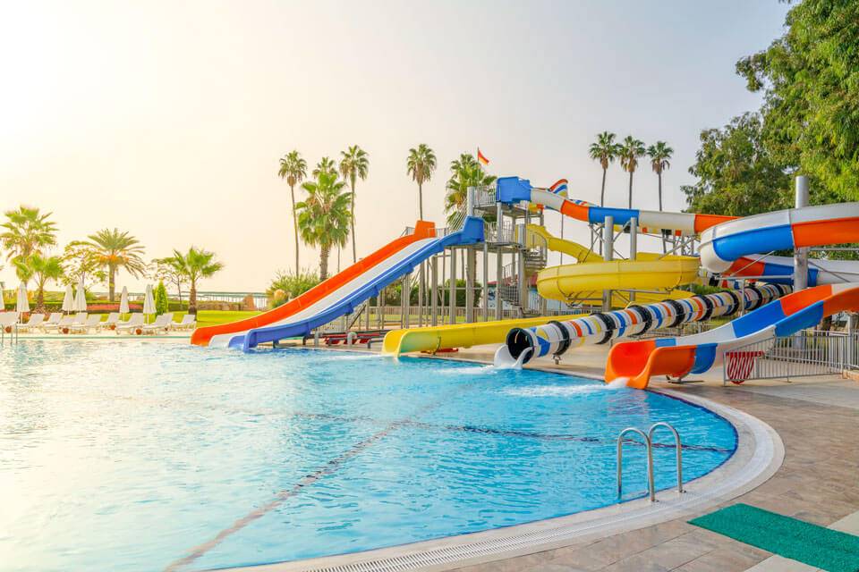 На большой территории расположены несколько бассейнов, в том числе и с морской водой, огромный аквапарк с 11 горками, два тематических аквапарка «Пиратский корабль» и «Тропический остров», открытая и закрытая игровые площадки. Можно воспользоваться арендой детской коляски и услугами няни.