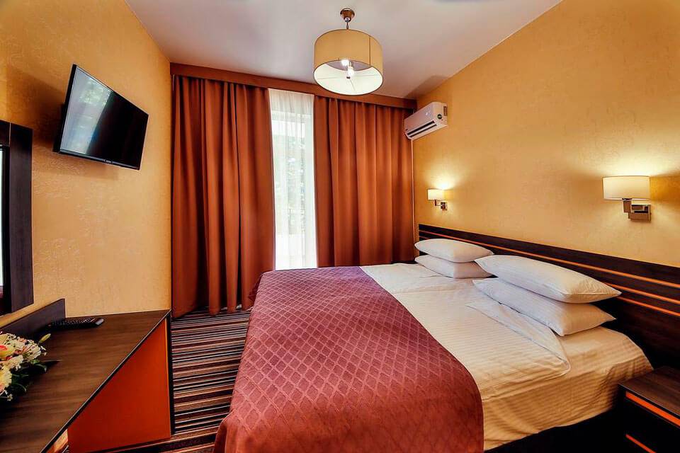Номерной фонд из 80 номеров занимает 5-этажное здание с 2 лифтами и пандусами для комфортного отдыха людей с ограниченными возможностями. Отличительная черта – богатый выбор вариантов размещение, которые удовлетворят даже самого острого критика. Некоторые номера имеют балконы с видом на Кабардинку, горы и море.