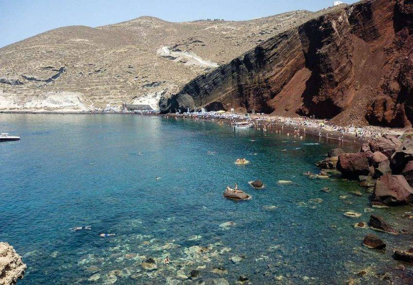 Санторини – это остров романтиков и влюбленных, а также любителей красивых пейзажей. Единственное, что может удивить детей здесь – так это разноцветные пляжи, цвет песка на них меняется от молочно-белого до черного, переходя то в розовые, то в золотистые, а то и в бордовые оттенки!