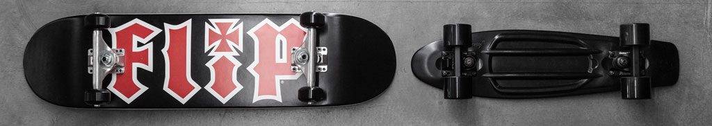 - В конструкции пенни борда используется лишь один конкейв (загиб деки), который находится в хвостовой части, а в скейтборде — с двух сторон.