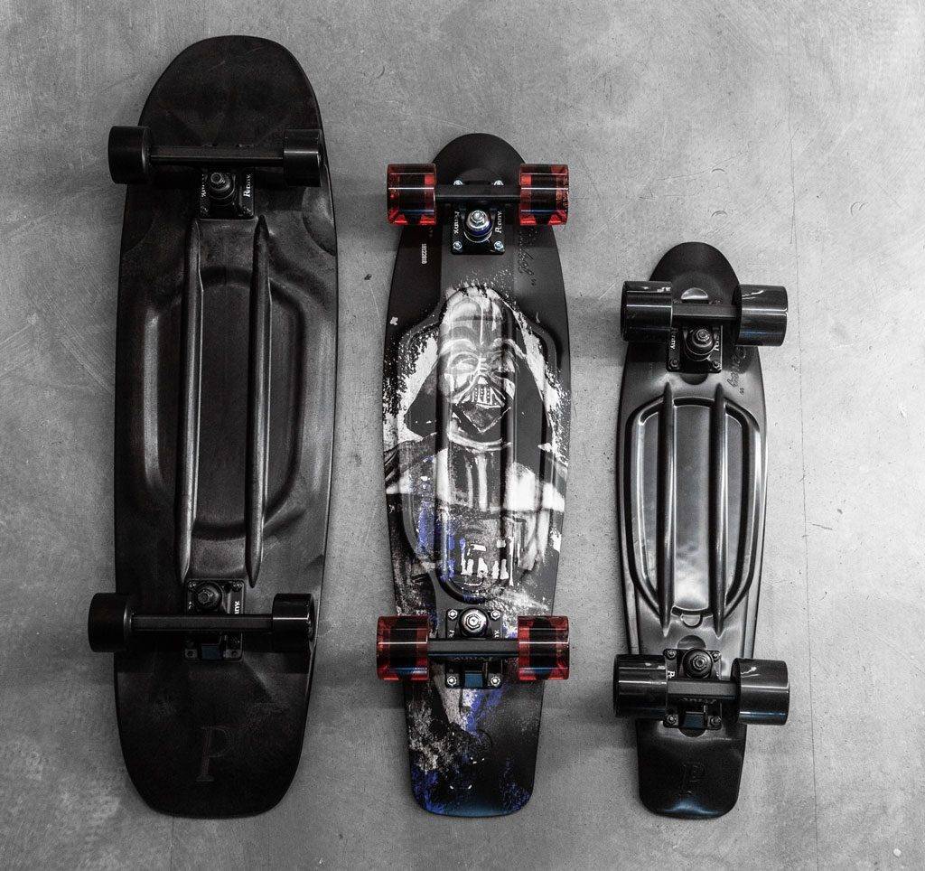 - Еще одно существенное отличие — это размеры. Скейтборд всегда будет больше и массивнее, чем его аналог пенни, поэтому второй считается более компактным и подходит для того, чтобы его брать с собой в различные поездки.