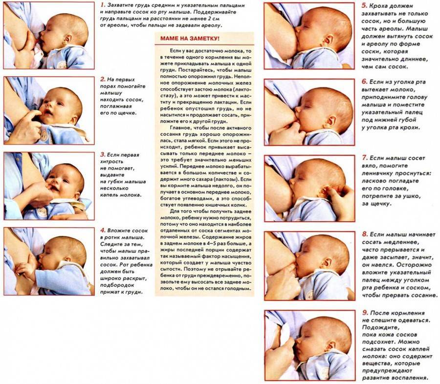 Форма и размер груди не определяет количество молока и возможность грудного вскармливания. Часто причину неудачного прикладывания ребенка к груди объясняют формой сосков. Маленькие, плоские или вдавленные соски нередко являются причиной беспокойства матери: сможет ли ребенок правильно взять грудь, не тяжело ли будет ему сосать. В большинстве случаев плоские соски не являются препятствием для грудного вскармливания, чаще всего причину неудачного кормления грудью следует искать в нарушении техники прикладывания ребенка к груди. Медицинский персонал должен помочь Вам правильно приложить ребенка к груди как можно раньше, лучше всего в первый день после родов, до того как «прибудет молоко» и грудь станет полной. Если по каким-то причинам ребенок не может сосать грудь, то следует сцеживать молоко и кормить из чашки. Не нужно кормить ребенка из бутылочки, так как это затруднит в дальнейшем прикладывание ребенка к груди.