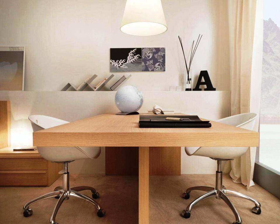 Удлиненное рабочее место, расположенное вдоль стены, визуально увеличит свободную площадь.