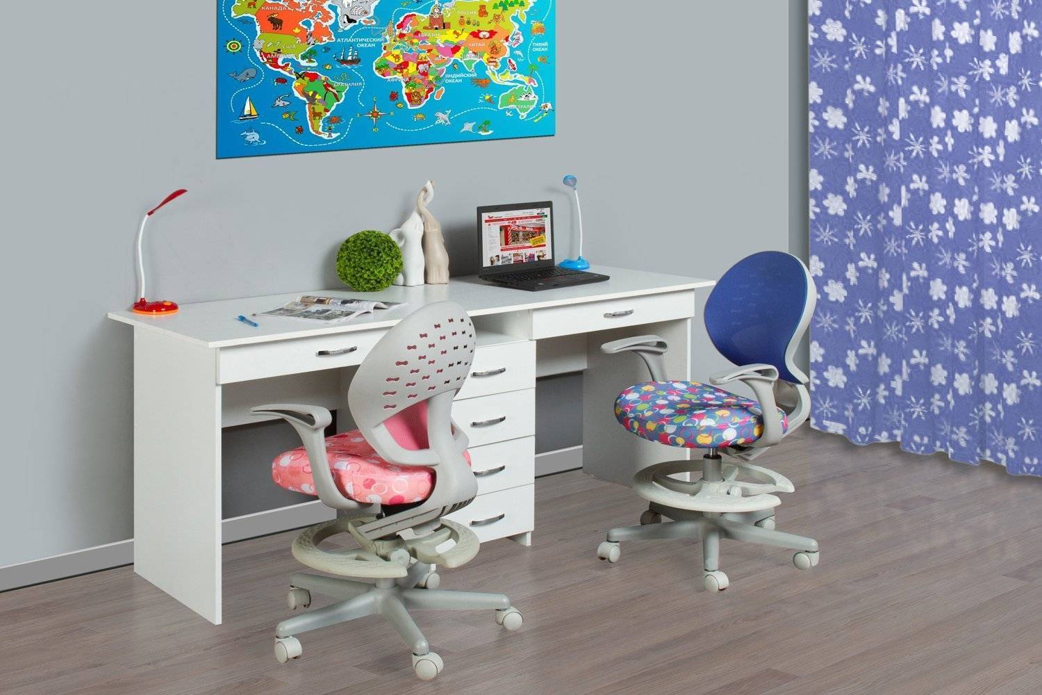 Если письменный стол предназначен для эксплуатации двумя детьми разного возраста и роста, то в таком случае можно приобрести специальные регулируемые подставки для стоп. С их помощью впоследствии можно легко отрегулировать правильно положение тела за столом. Помимо этого, можно отдать предпочтение специальным креслам с возможностью регулировки высоты и встроенной подставкой для стоп.