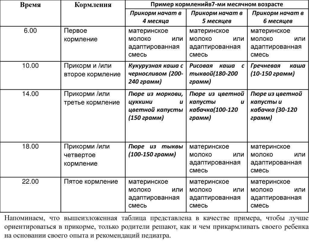 Так выглядит примерный режим питания на день. Если молодой маме будет проще ориентироваться не на один день, она может подготовить примерное меню на неделю. Продумает виды прикорма, режим питания и способы разнообразить рацион малыша в течение 7 дней.