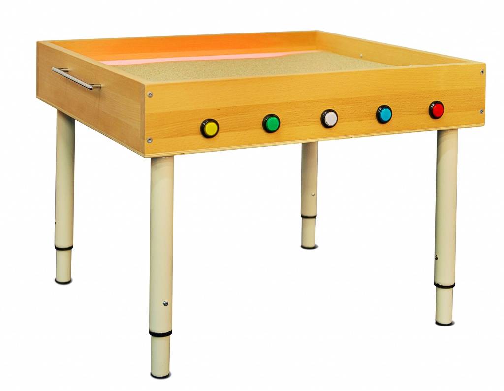 Экран с подсветкой для рисования песком — позволяет проводить обучающие игры и организовывать досуг. Продаётся в комплекте с кварцевым песком. Производится в виде стола на ножках или настольного планшетного модуля.