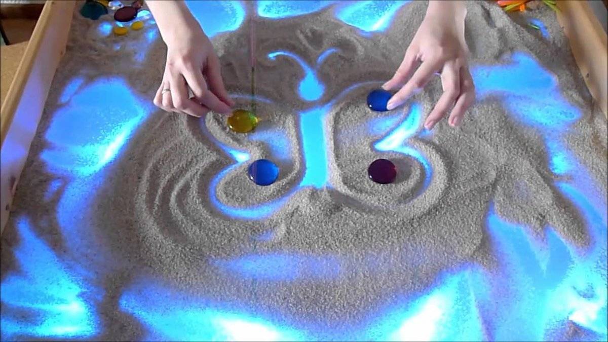 Специалисты видят в световой песочнице мощный инструмент для всестороннего развития ребенка. По их словам, для малыша это не просто один из вариантов творчества, а еще и прекрасная тренировка мелкой моторики рук, которая неизбежно вызывает ускоренное развитие мозга.