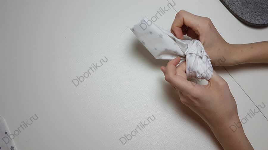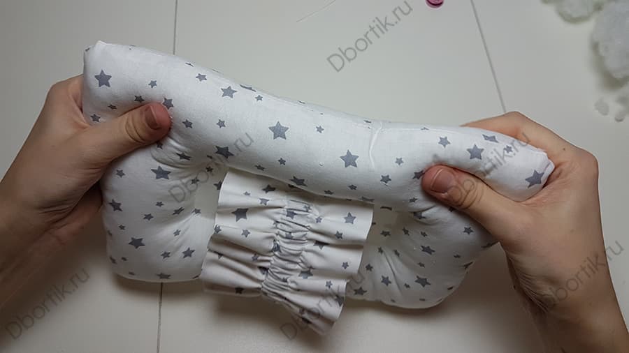Разминаем подушку, для равномерного заполнения наполнителя (холлофайбера).