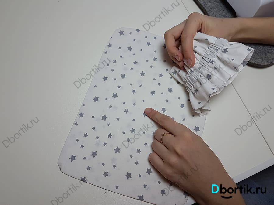 Прикладываем ленту к середине подушки, чтобы резинка была вдоль подушки.