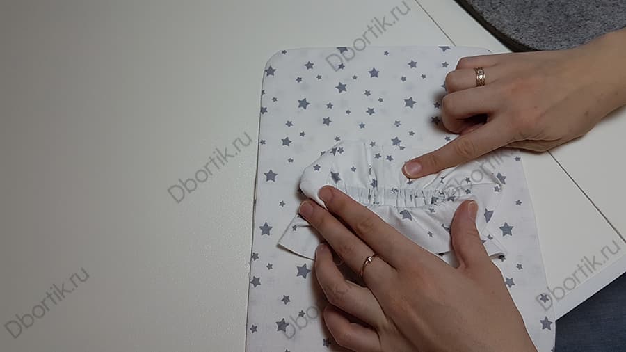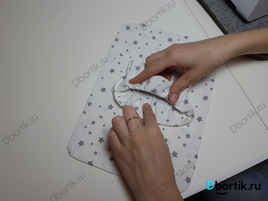 Сделать шов с двух сторон, учитывая отступы, чтобы осуществить запас хода для вставки резинки.