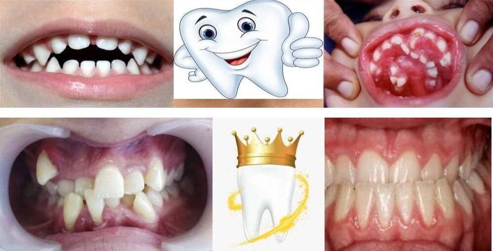 Ситуация, при которой зубы меняются местами. Единственная причина – ошибки в зачатках зубов. Лечится путем установки коронок или удалением проблемных зубов и последующим протезированием.