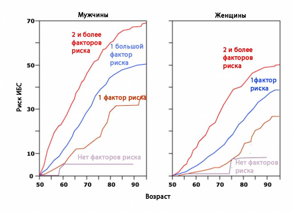 На графике показана частота сердечно-сосудистых заболеваний в зависимости от количества факторов риска