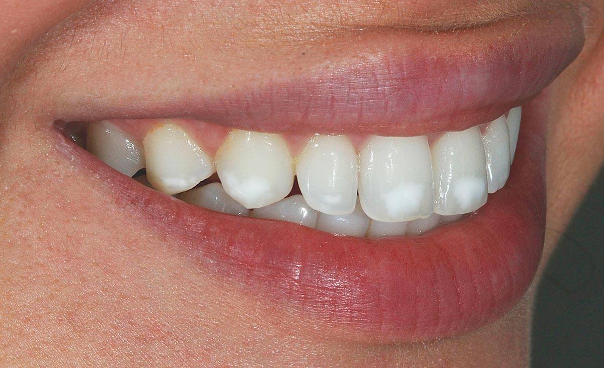 В зубе еще нет дырки, но на поверхности заметно беловатое пятно. Изменение цвета и структуры эмали означает, что в этой зоне она теряет минеральные вещества. На ранней стадии нет боли и дискомфорта, поэтому пациенты редко обращаются к стоматологу, даже не подозревая о наличии кариеса. Но именно на стадии пятна вылечить кариес проще всего. Прогрессирование заболевания можно остановить консервативными методами без сверления и установки пломбы. На этой стадии эффективны реминерализация, простое и глубокое фторирование, метод инфильтрации.