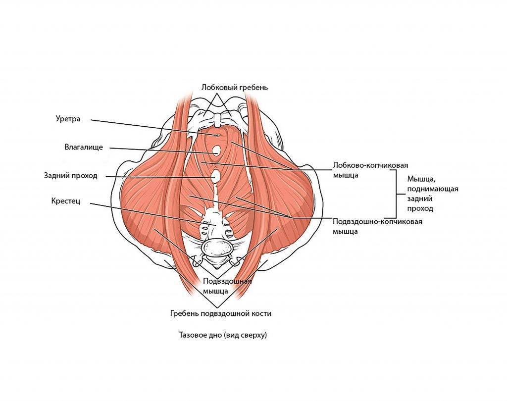 - Тазовую диафрагму составляют следующие мышцы: мышца, поднимающая задний проход (лобково-копчиковая мышца, она же лобково- простатическая, лобково-влагалищная, лобково-анальная, лобково-ректальная, подвздошно-копчиковая), копчиковая мышца, грушевидная мышца и внутренняя запирательная мышца. Данные мышцы иннервируются крестцовыми корешками спинного мозга (S3-S5).