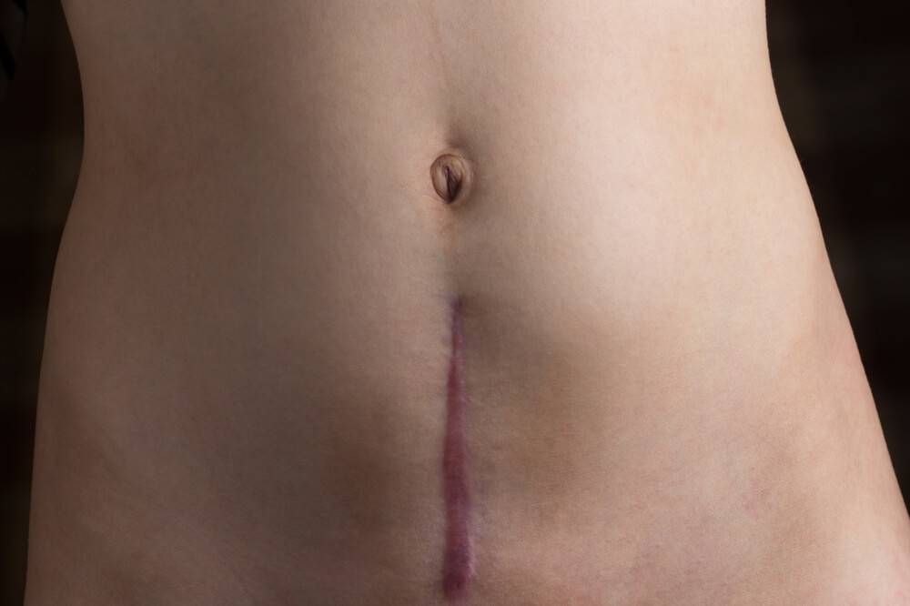 Но в российских роддомах чаще применяется другой поперечный разрез — лапаротомия по Джоэл-Кохину. После кесарева остается рубец длиной до 20 см на 5-7 см ниже пупка. В этом случае врач рассекает верхнюю часть маточной полости. Чтобы «замаскировать» шрам, придется либо носить высокое белье, либо прибегать к методам пластической хирургии.