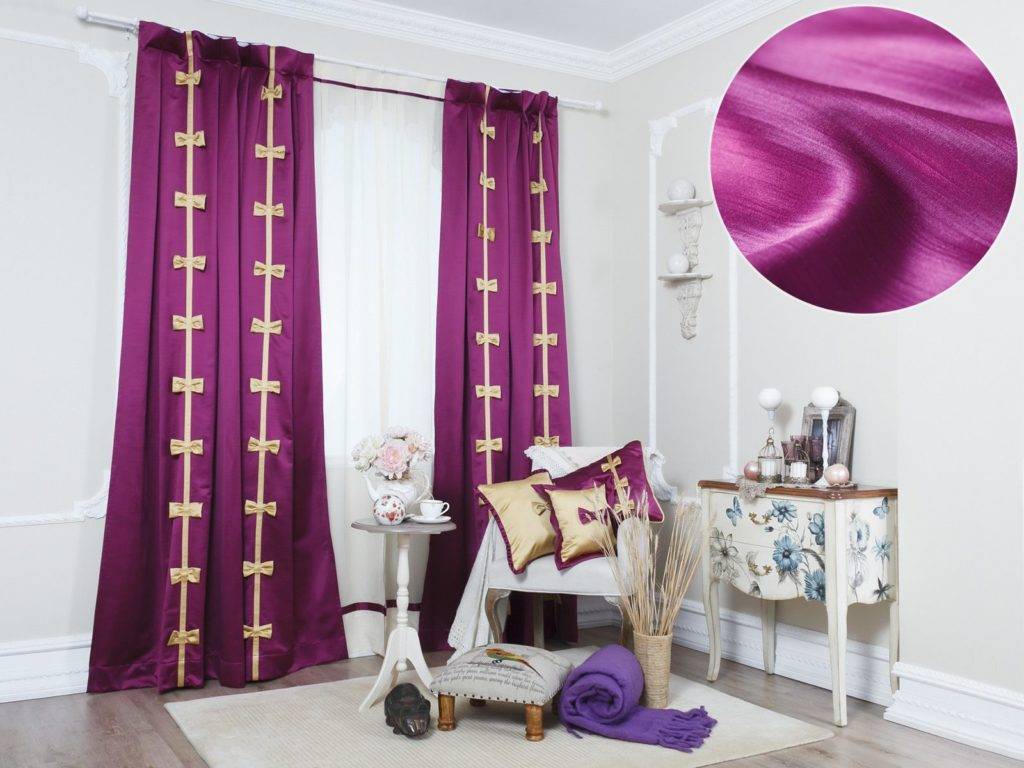 - Тафта — слегка шуршащий и немного драпирующийся материал. Гардины из него подходят для разных стилей, например, классического, где подчёркивается изящество и воздушность форм интерьера комнаты для девочки. Но особенно эффектно выглядят гардины из тафты на окнах солнечной стороны. Подходят занавески для девочек 12–16 лет.
