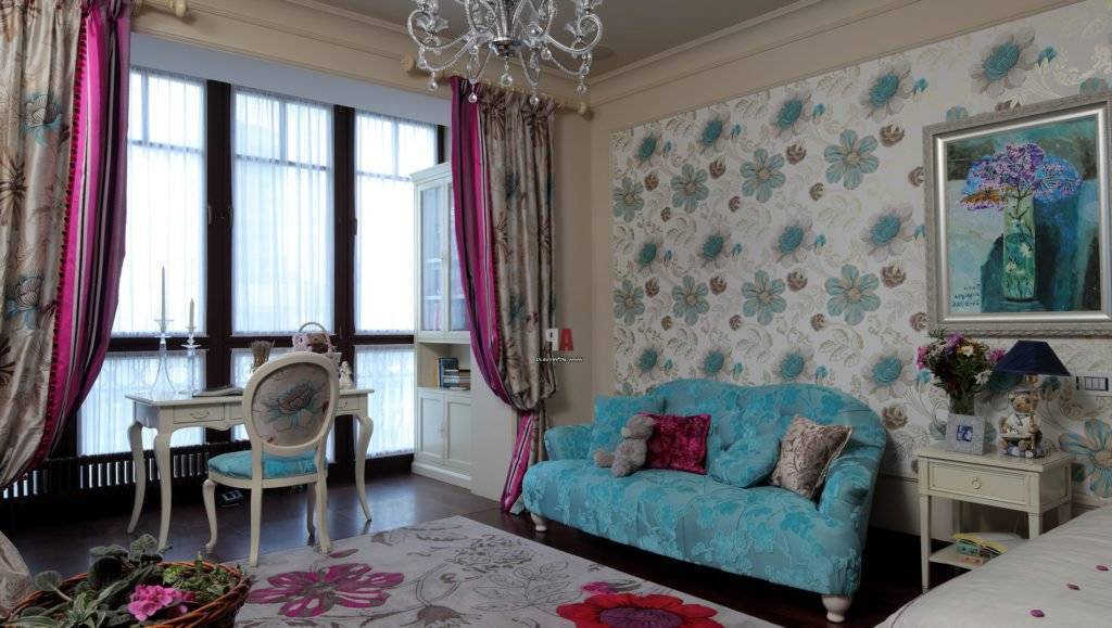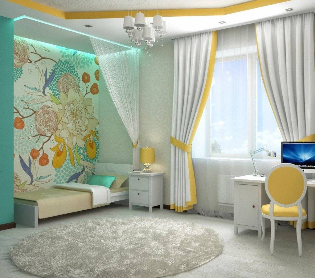 Для модерна характерны шторы длиной в пол, поэтому такой стиль больше подойдет для комнаты девочки-подростка