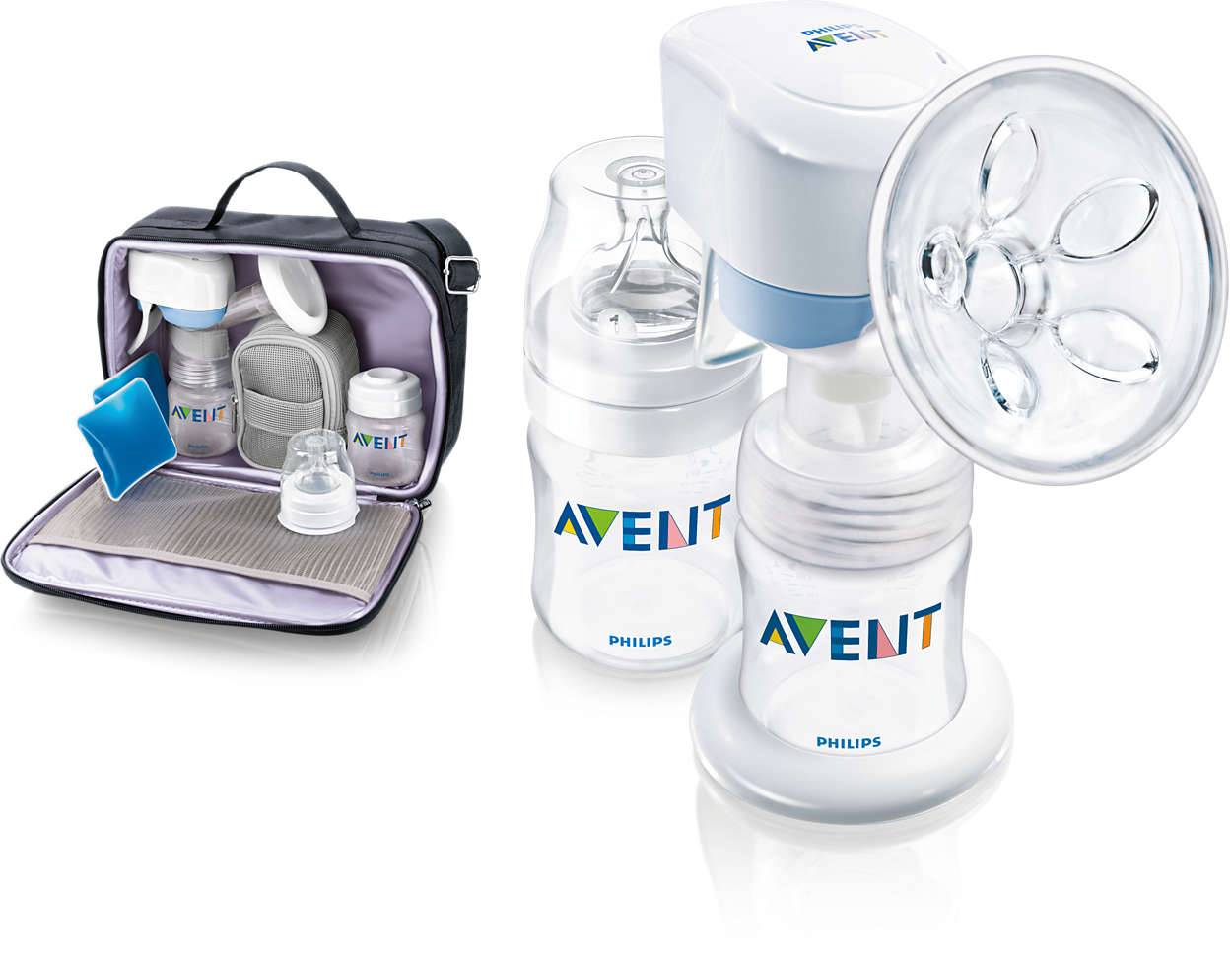 Модель отличается оптимальной комплектацией, в которую входит необходимый минимум: молокоотсос, электронная система управления, стандартная насадка, бутылочка 125 мл, крышки для транспортировки и хранения молока, комплекты накладок в бюстгальтер.