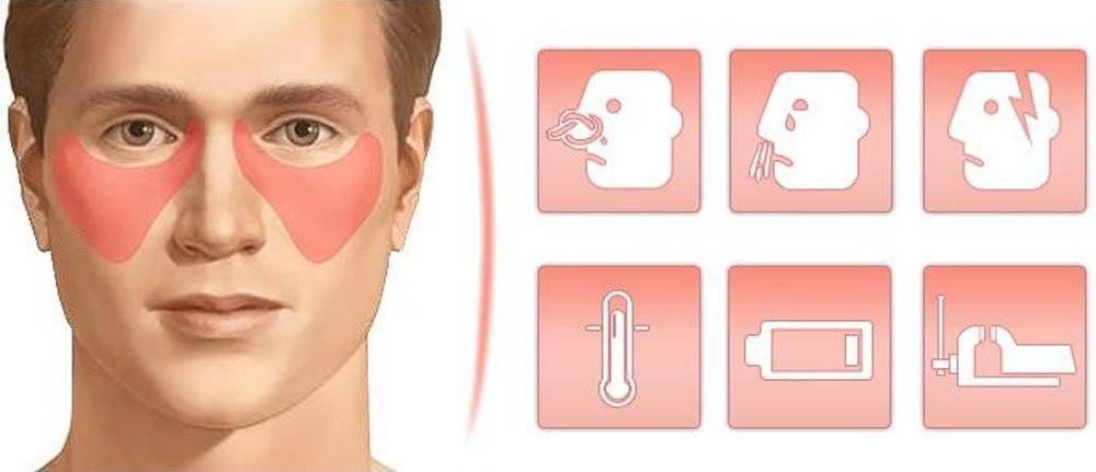 - повышенная температура (до 38–39 0С) при остром процессе, при хроническом синусите лихорадка отмечается редко;