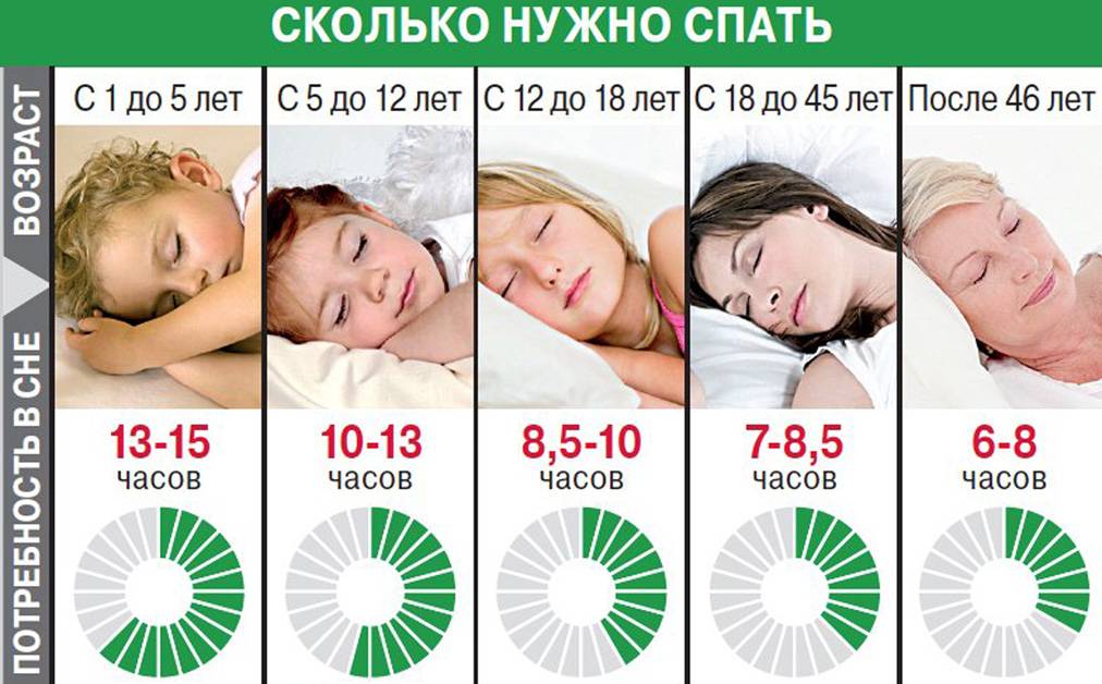 - старше 12 лет: ночной сон 9—9,5 часов.
