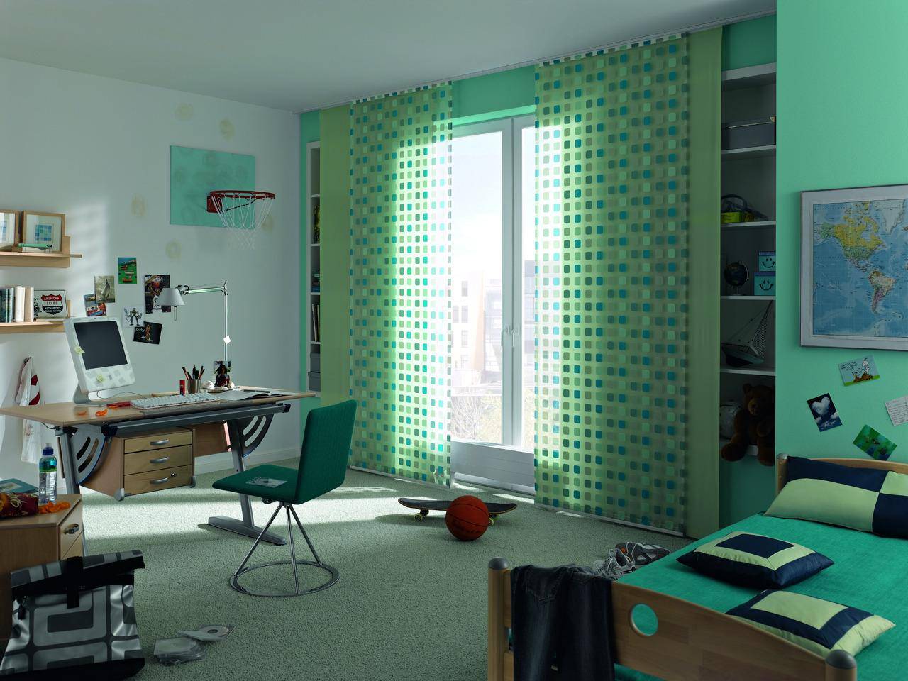 Для мальчишек, живущих в такой комнате, яркость штор — продолжение выбранного стиля