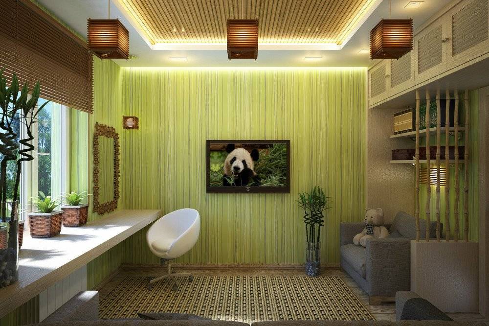 Можно установить в детской комнате и передвигающиеся перегородки в стиле японских традиций. Зрительное деление предполагает, например, окраску стен в различные цвета. Стена у кровати может иметь спокойный мятный цвет, Около рабочего стола и шкафа с книгами лучше поклеить яркие обои с динамичным сюжетом.