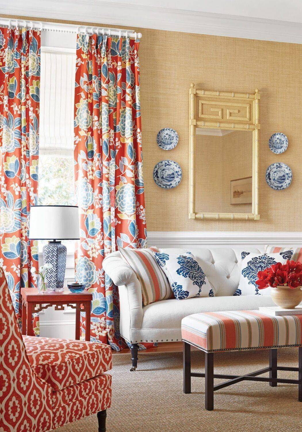 - только один акцент. Если хочется повесить шторы с ярким интересным принтом или узором, придется уравновесить их однотонными стенами, и наоборот, стены с ярким рисунком обоев требуют спокойных монохромных штор.