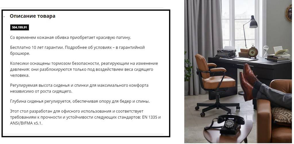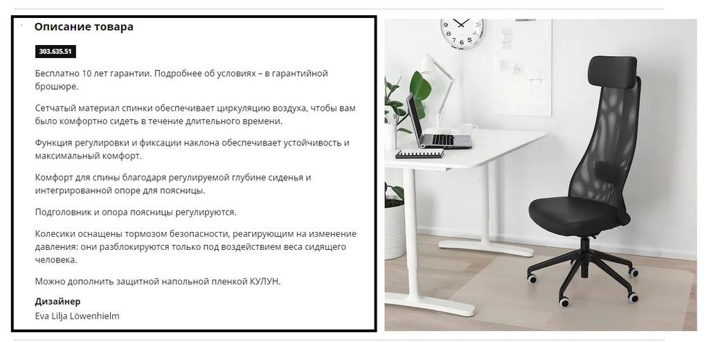 Кроме того, стоит отметить комплексный подход IKEA в разработке мебели. Помимо кресел, в их ассортименте есть коврики, способные защитить напольное покрытие, и специальные подставки для ног, позволяющие занять наиболее удобное положение.