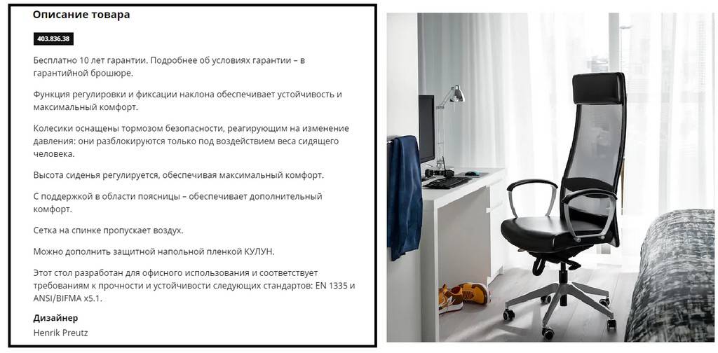 Что из этого есть в ИКЕА? Я выбирала для себя стул в этих сериях: «Маркус», «Эрвфьеллет», «Алефьелль», «Хаттефьелль». Они более функциональные, мягкие, удобные, регулируются.