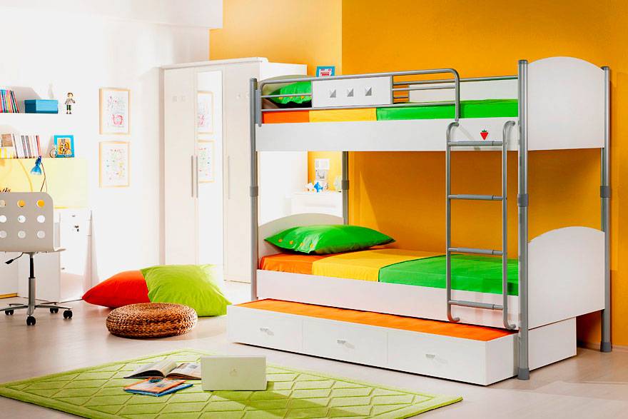 - экономия территории — если в семье один ребенок, то в детской вполне достаточно места для его занятий, в том числе, подвижными играми. Но если семья имеет троих или более детей, то свободного места, соответственно, в комнате практически не остается за счет размещения спальных мест;