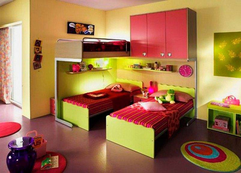 Вот несколько вариантов оформления детской комнаты для троих детей: