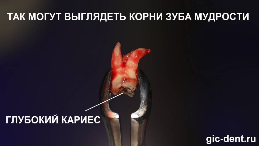 Бывают ли какие-то сложности при удалении корней зубов мудрости? Удаление корней у зубов мудрости подразумевает наличие достаточного опыта у хирурга. Зачастую корни этих третьих моляров (зубы мудрости) располагаются близко к нижнечелюстному каналу. Часто корни моляров примыкают к верхней или боковой стенке нижнечелюстного канала. Конфигурация корней зуба мудрости крайне разнообразна и порой крайне сложна для удаления: